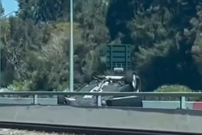 Allegedly stolen car ends on roof on Kwinana Freeway